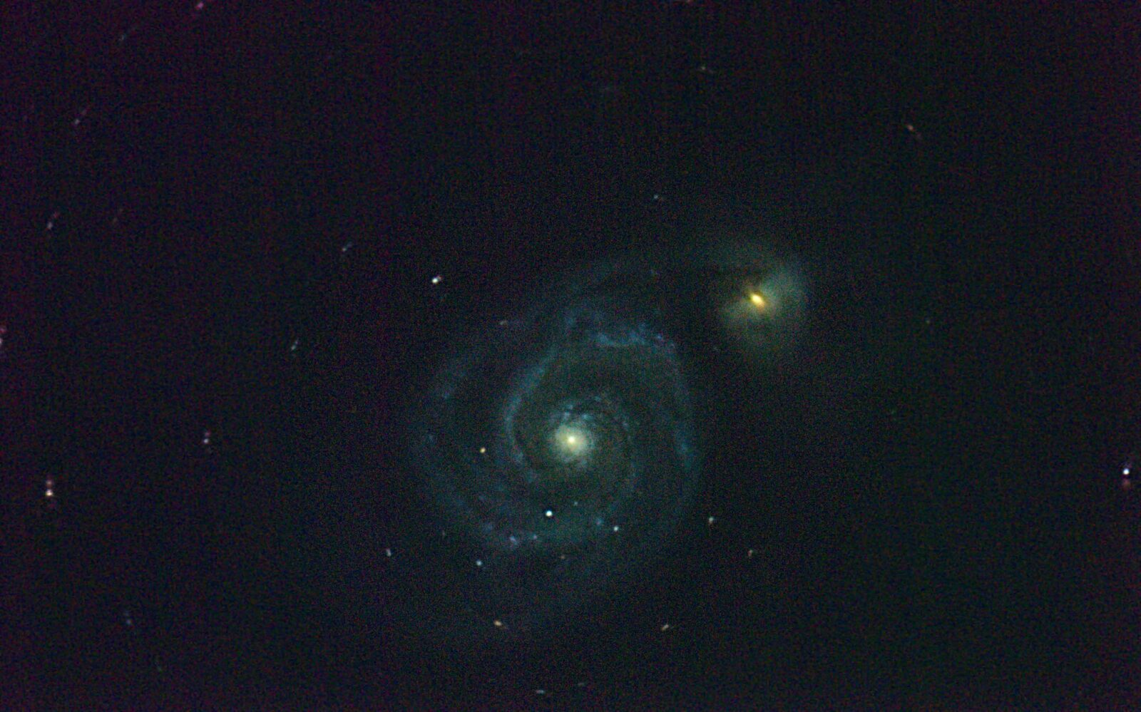 - Schwergewicht im Zentrum: Das supermassive schwarze Loch im Kern von M51 hat eine Masse von etwa 1 Million Sonnen. Zum Vergleich: Das Schwarze Loch unserer Milchstraße (Sgr A*) ist mit ca. 4 Millionen Sonnenmassen deutlich schwerer, aber M51 ist im Kernbereich energetisch extrem aktiv.