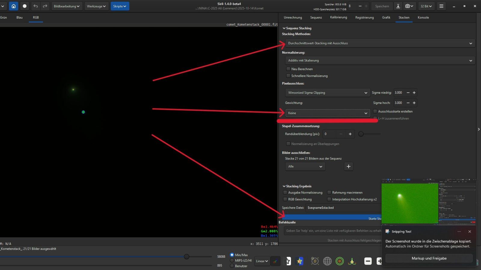 Somit bleibt mir nur noch zu sagen: Angesichts der komplexen technischen Anforderungen, die bei solch einem Kometenstacking nun mal vorhanden sind, bin ich mit dem Gesamtergebnis wirklich zufrieden.