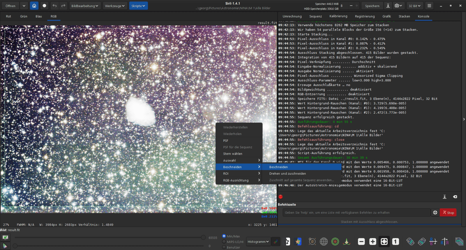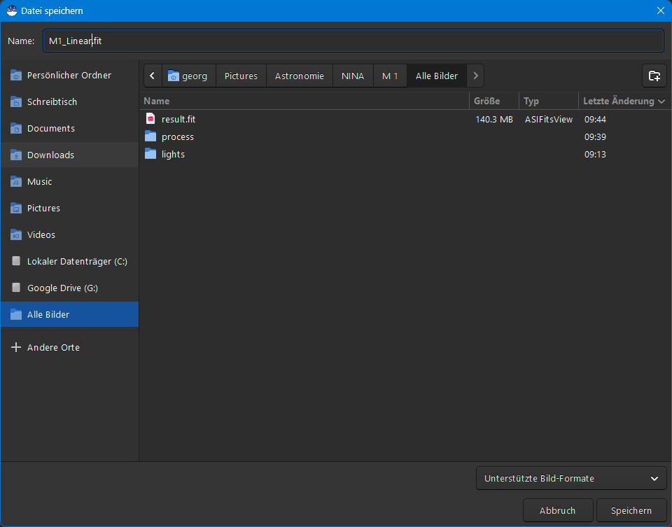 Ich speichere das Zwischenergebnis als 32-bit FITS-Datei ab.