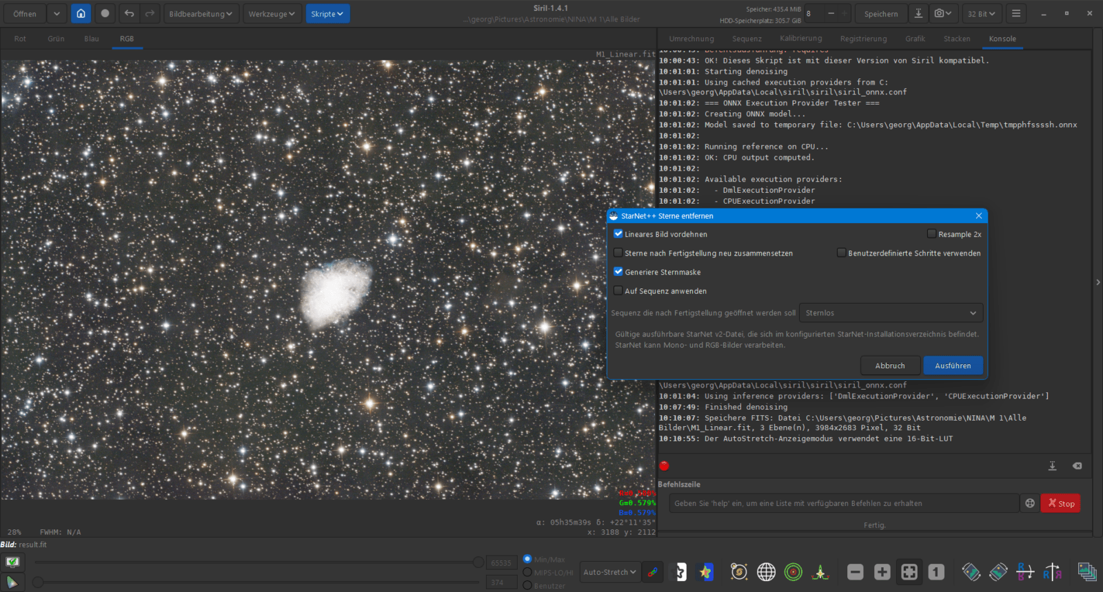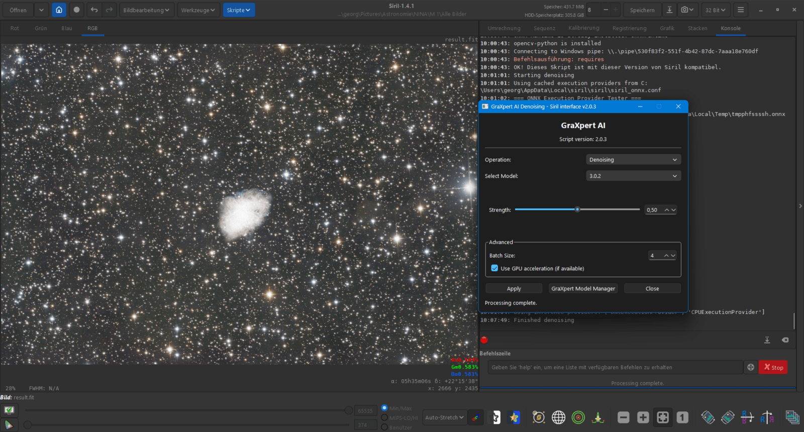 Erst jetzt führe ich mit GraXpert ein Denoise durch. (Skripte – Python-Skripte – Processing – GraXpert-AI)
