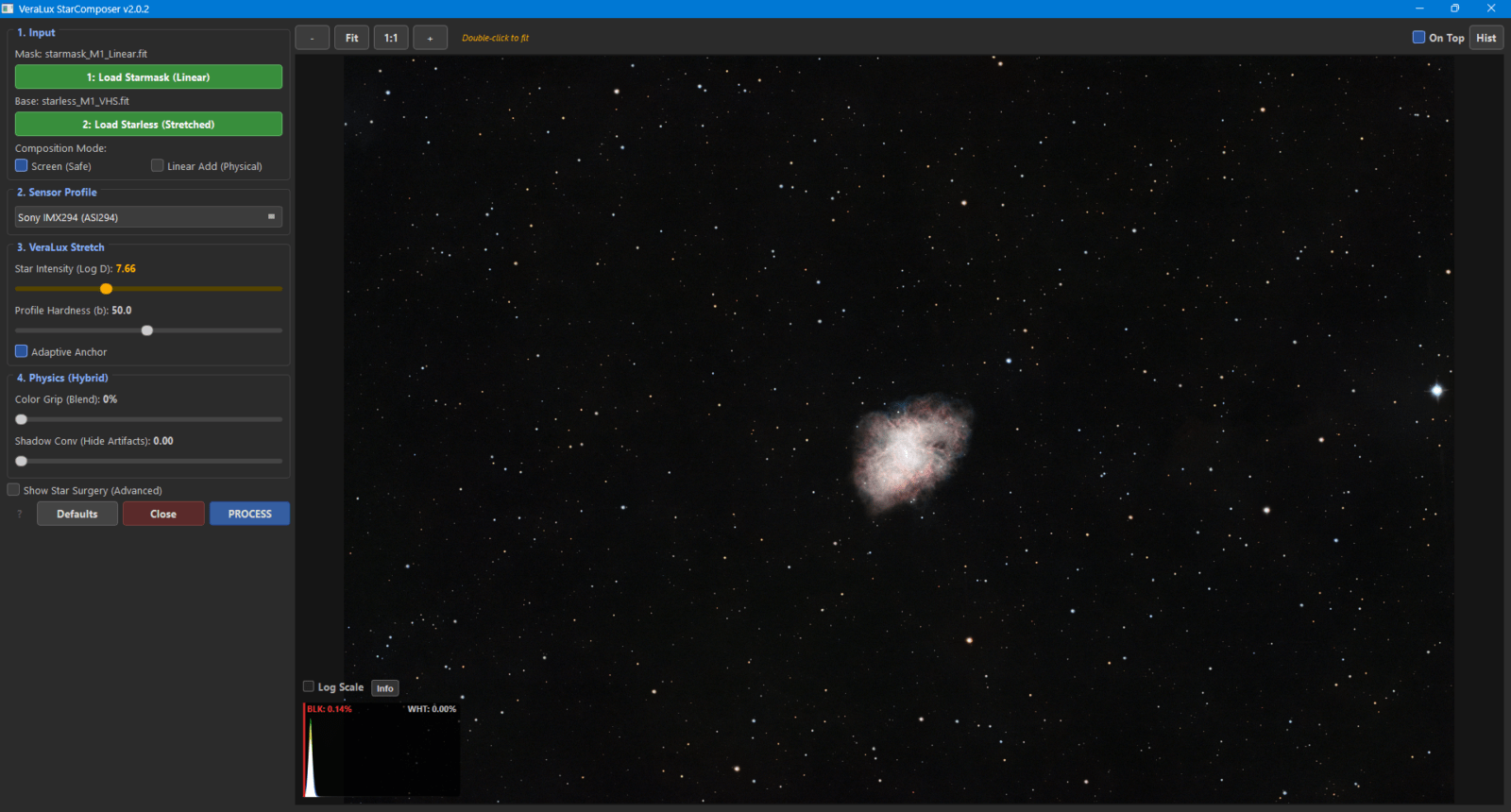 VeraLux Hypermetric Stretch vs. Standard-Methoden Anstatt das Bild manuell über Histogramm-Transformationen zu verbiegen, nutzt dieser skriptbasierte Ansatz eine logarithmische Skalierung. Das schützt die Highlights davor, zu schnell auszubrennen, während die schwachen Signale bereits angehoben werden. „Target Bg“ dient hierbei als deine grobe Marschrichtung für die gewünschte Streckungsstärke.