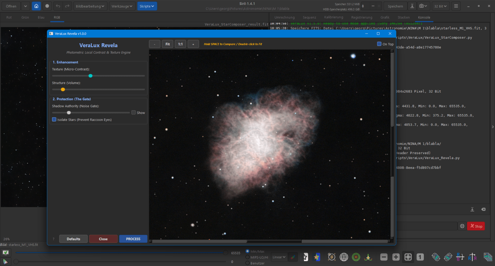 Mit VeraLux Revela bringe ich feine Details und schwache Nebelstrukturen richtig zur Geltung. (Skripte – Python-Skripte – VeraLux – VeraLux_Revela)