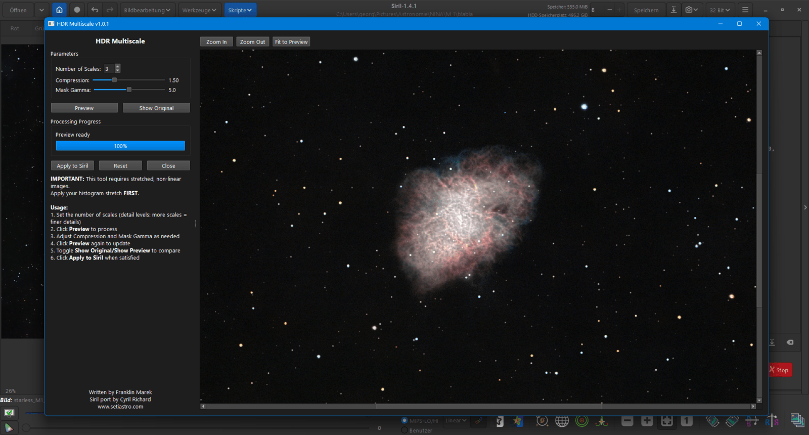 Mit HDR Multiscale bändige ich helle Zentren und erhöhe gleichzeitig den Kontrast in den Strukturen. (Skripte – Python-Skripte – Processing – HDR_multiscale)