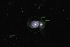 - Galaktische Nachbarschaft: M51 ist das dominante Mitglied der M51-Gruppe, zu der neben NGC 5195 auch die Sonnenblumengalaxie (M63) sowie mehrere kleinere Zwerggalaxien wie NGC 5023 und NGC 5229 gehören.